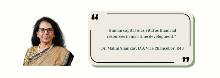 Dr. Malini Shankar, called for a 360-degree capacity-building approach to meet the targets under MIV 2030 and Maritime Amrit Kal Vision 2047. She emphasised that maritime growth depends on trade expansion, not just infrastructure. Highlighting challenges like geopolitical disruptions and the need for supportive external conditions, she emphasised bridging the persistent gap between academic education and the practical skillsets demanded by an evolving industry, particularly as technologies like AI, IoT, and automation reshape port logistics. Dr. Shankar also noted India’s active investments in initiatives like Sagarmala and alternative fuels, and flagged the shortage of qualified maritime trainers, especially in emerging tech areas.