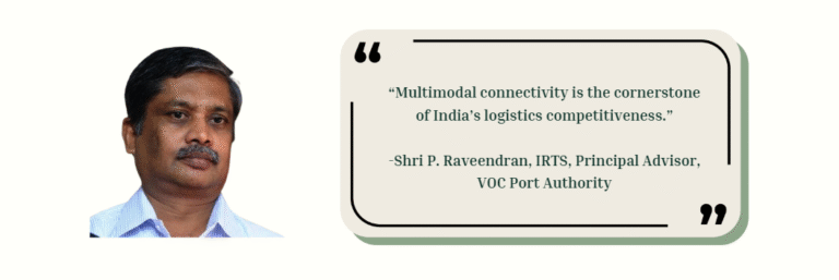 Shri P. Raveendran, stressed that India’s projected fourfold increase in port capacity must be matched by upgraded multimodal connectivity. He cited the prolonged 20-year delay of the Chennai Port elevated corridor as a stark example of how poor last-mile infrastructure can hamper port efficiency and trade potential. He underscored the urgency of shifting freight from road to rail to improve logistics sustainability and competitiveness, especially in the context of green supply chains and declining rail freight share.