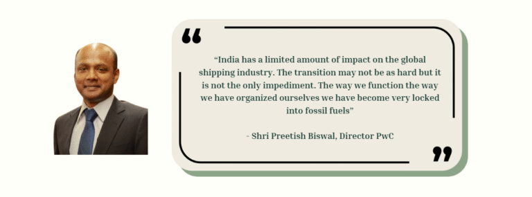 Shri Preetish Biswal added a perspective by framing decarbonisation across three interdependent pillars: technology, finance and regulation. Technological innovations like battery storage, CCUS and green fuels must be backed by scalability and affordability. He emphasized the role of carbon markets in improving project IRR through tradable credits and the need for blended finance models to mitigate investment risk. Regulatory clarity covering energy, shipping and carbon frameworks is essential for fostering investor confidence and ensuring predictability. He argued that government support is necessary but insufficient due to budgetary limitations and competing priorities. He expressed that the state must act as an ecosystem enabler by offering tax benefits, performance-linked incentives and risk guarantees. A coordinated approach, involving policy makers, financiers, technology providers, and international standards bodies is critical for building a sustainable maritime finance architecture.